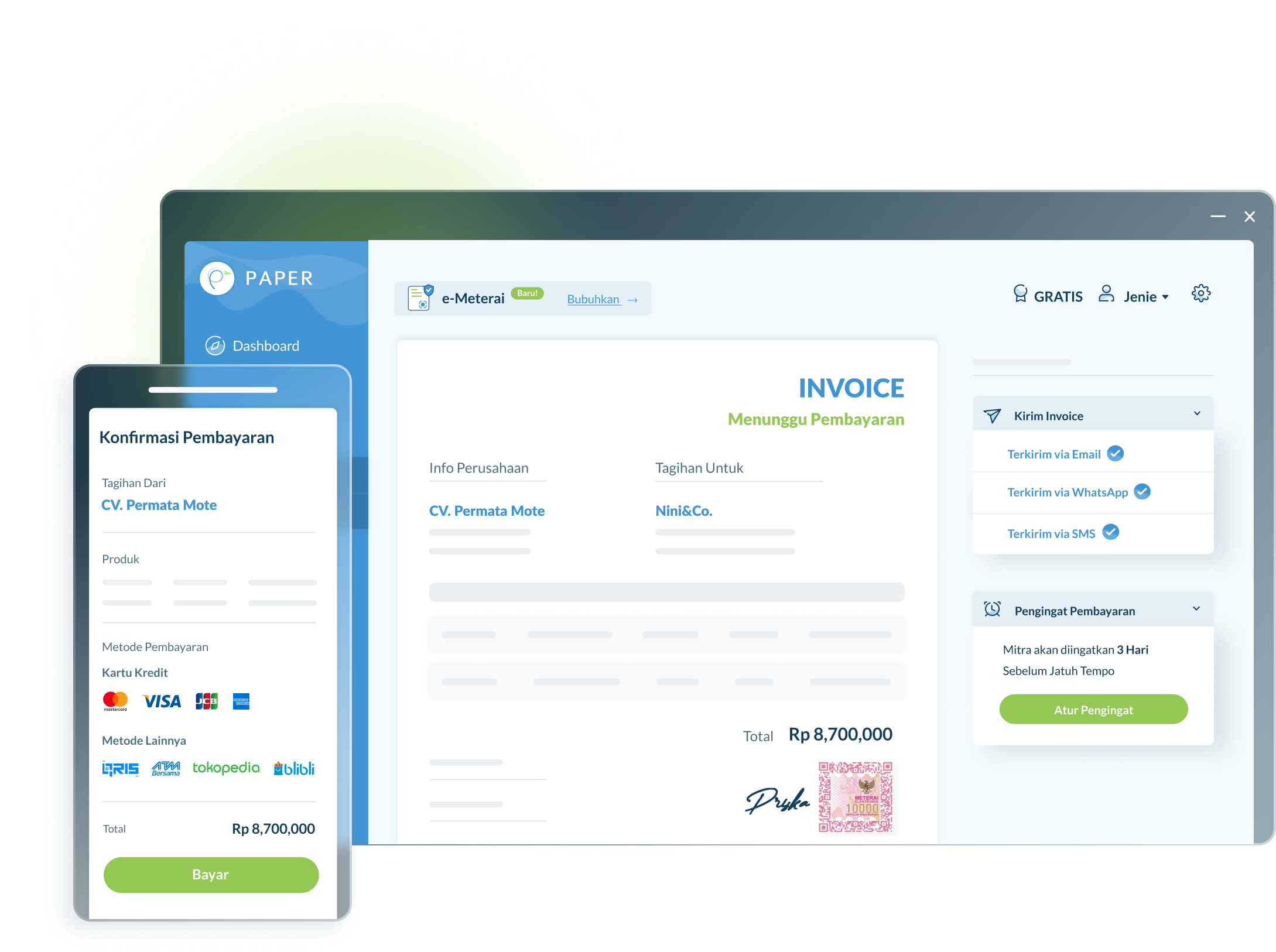 Di sisi lain, Paper.id juga mendukung lebih dari 30 metode pembayaran, mulai dari transfer bank, kartu kredit, e-wallet, hingga cicilan tanpa memerlukan mesin EDC.